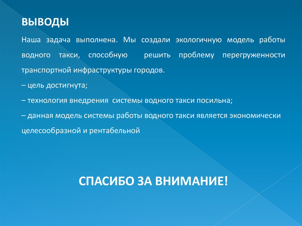 – данная модель системы работы водного такси является экономически