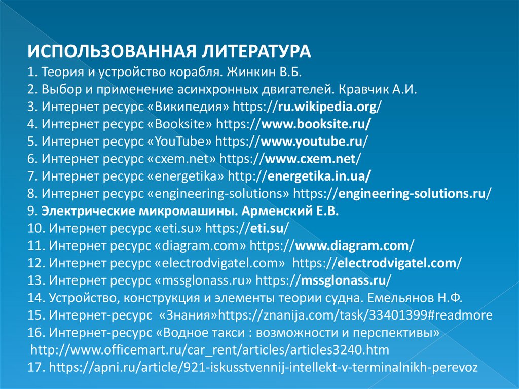 ИСПОЛЬЗОВАННАЯ ЛИТЕРАТУРА1. Теория и устройство корабля. Жинкин В.Б.