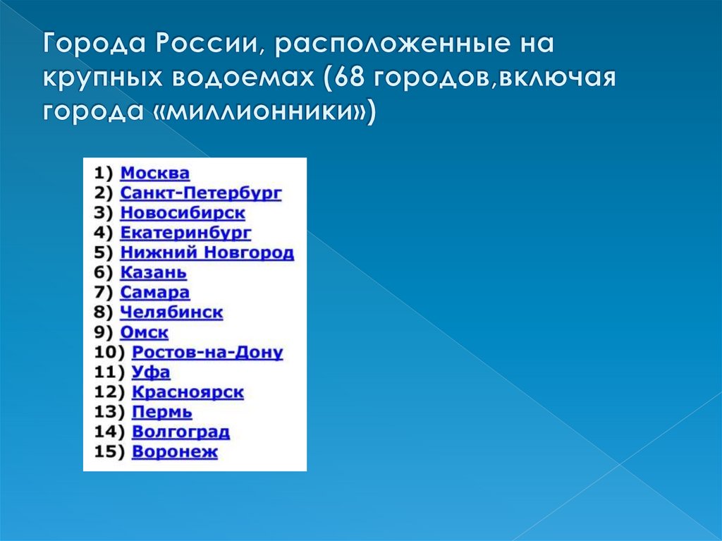 Большинство крупных городов России ипрактически все города- «миллионники»