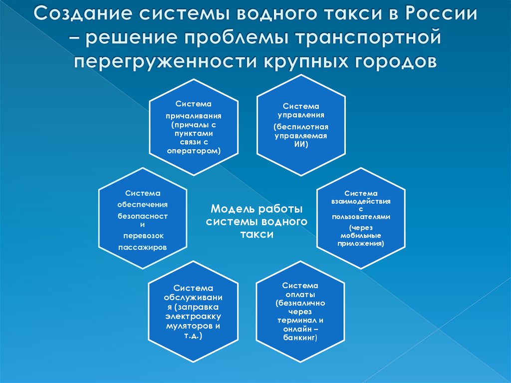 Разработать систему функционирования водного такси как