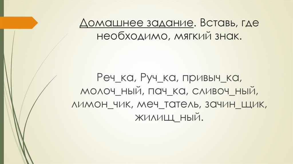 Домашнее задание. Вставь, гденеобходимо, мягкий знак.