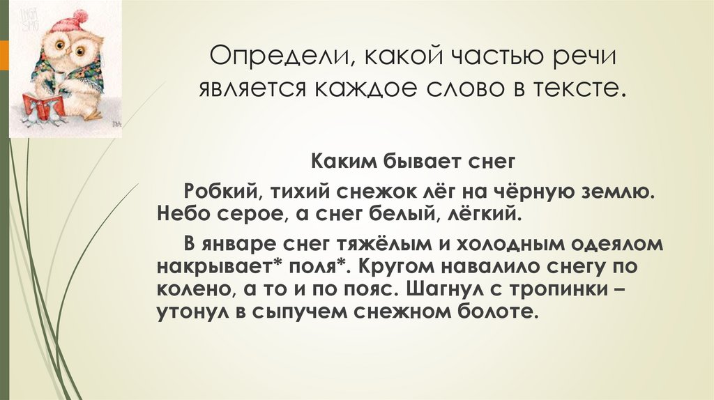 Определи, какой частью речиявляется каждое слово в тексте.
