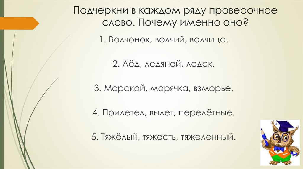 Подчеркни в каждом ряду проверочноеслово. Почему именно оно?