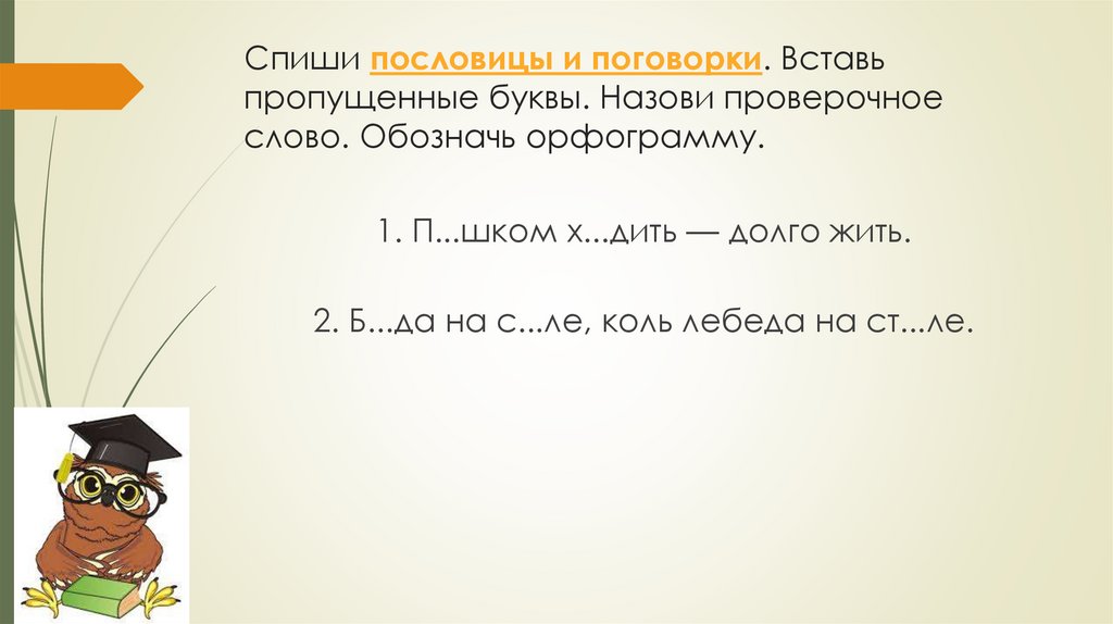 Спиши пословицы и поговорки. Вставьпропущенные буквы. Назови проверочное