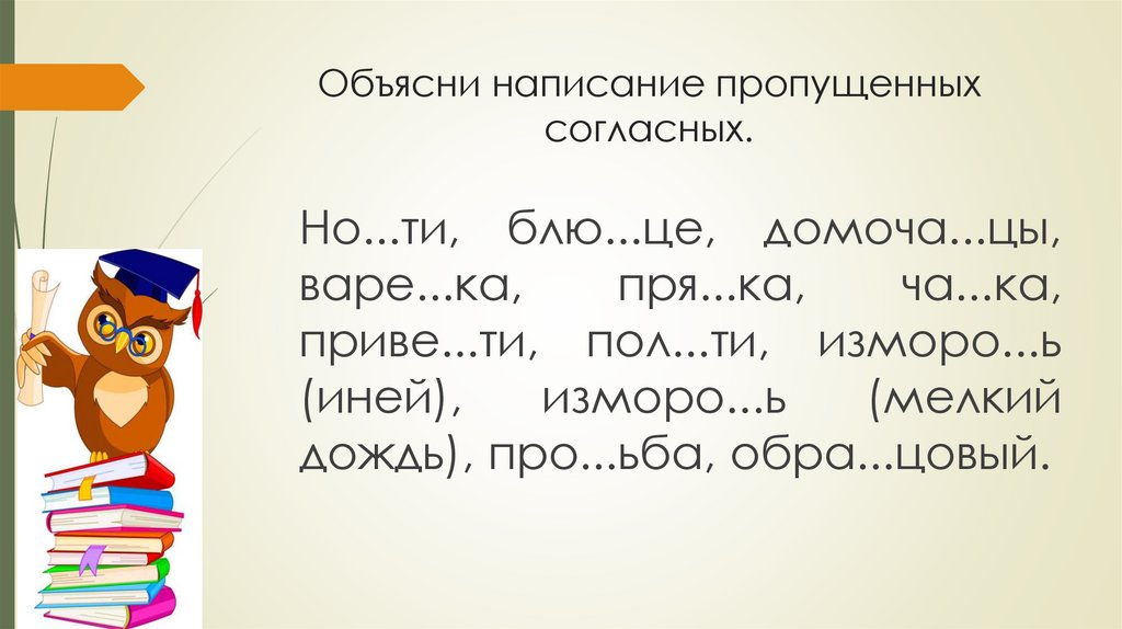 Объясни написание пропущенныхсогласных.