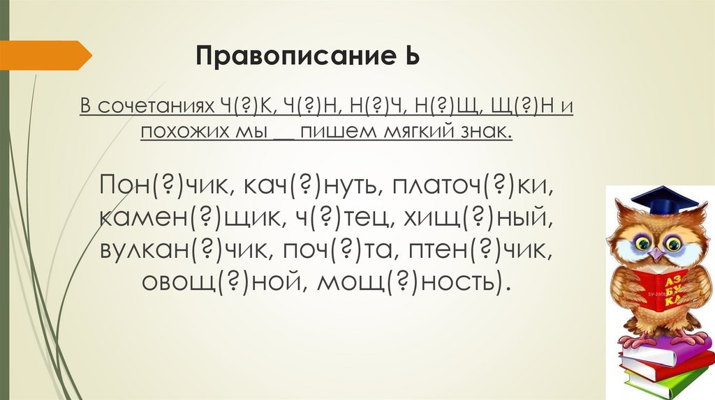 Правописание ЬВ сочетаниях Ч(?)К, Ч(?)Н, Н(?)Ч, Н(?)Щ, Щ(?)Н и