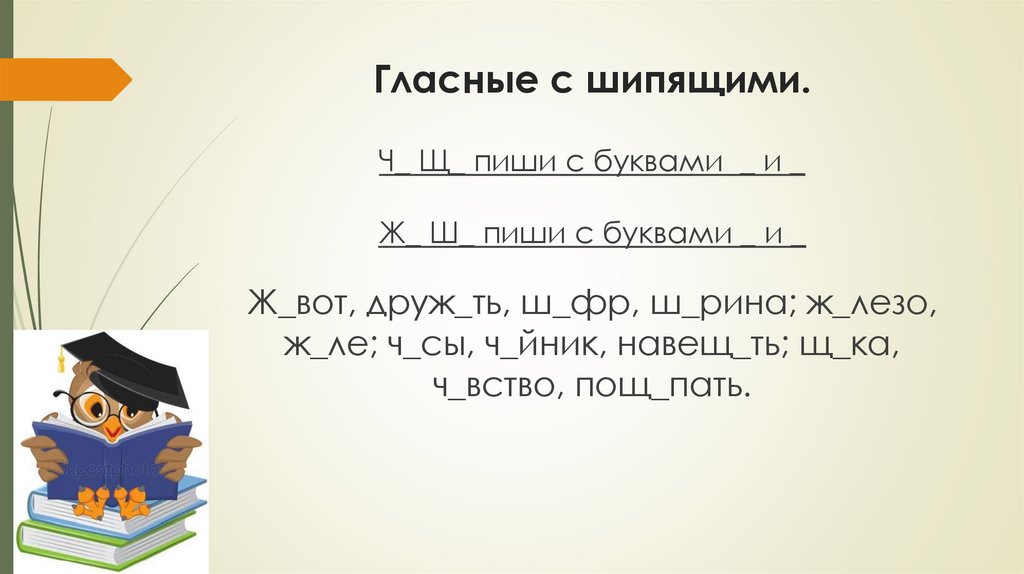 Гласные с шипящими.Ч_ Щ_ пиши с буквами _ и _
