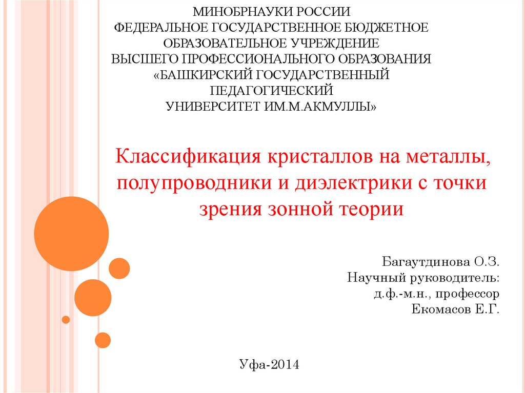 Классификация кристаллов на металлы, полупроводники и диэлектрики с точки зрения зонной теории