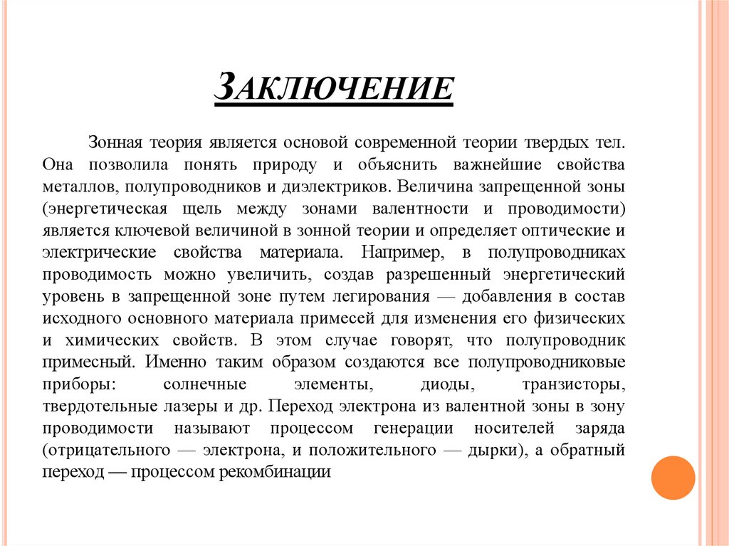 ЗАКЛЮЧЕНИЕЗонная теория является основой современной теории твердых тел.