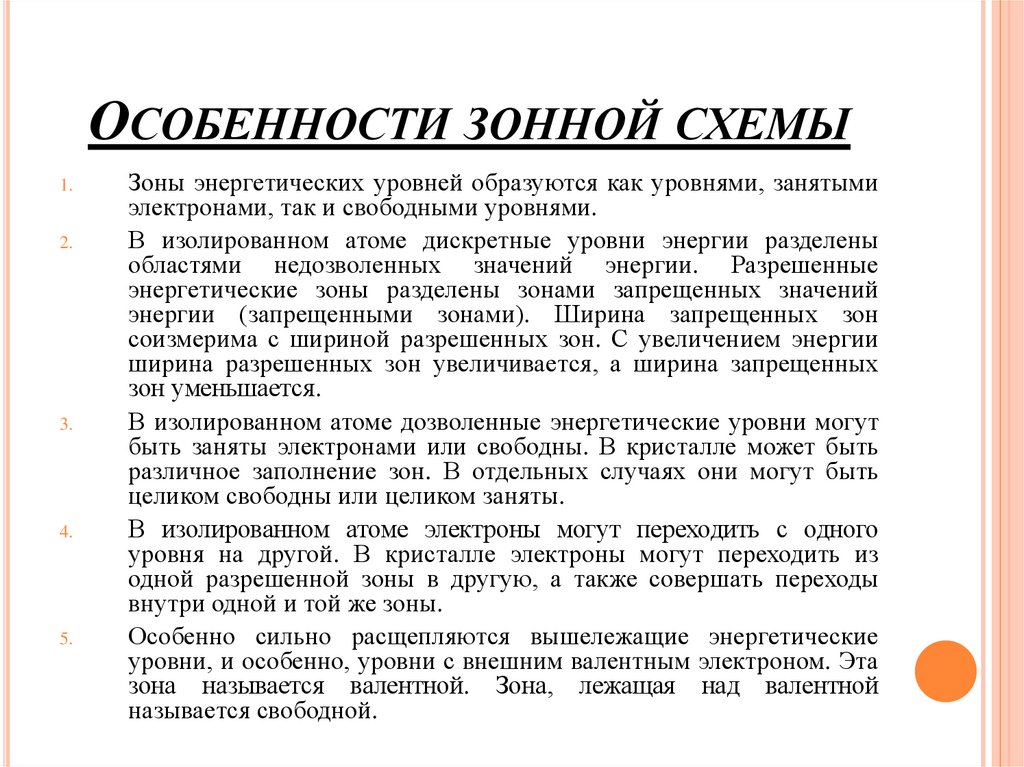 ОСОБЕННОСТИ ЗОННОЙ СХЕМЫ1.