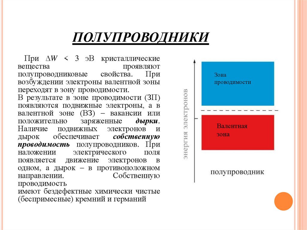 ПОЛУПРОВОДНИКИПри ∆W < 3 эВ кристаллические