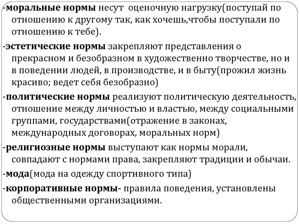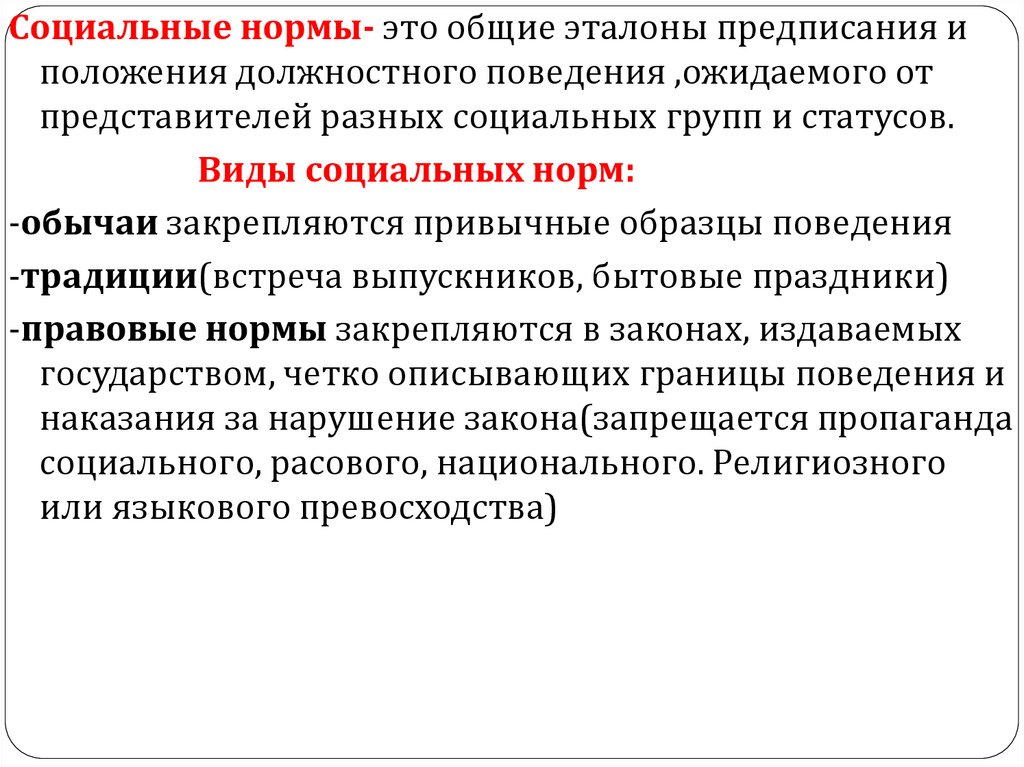 Социальные нормы- это общие эталоны предписания иположения должностного поведения ,ожидаемого от