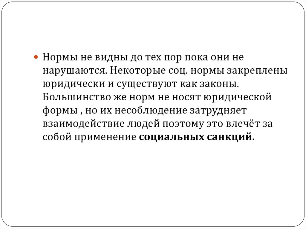 Нормы не видны до тех пор пока они ненарушаются. Некоторые соц. нормы закреплены