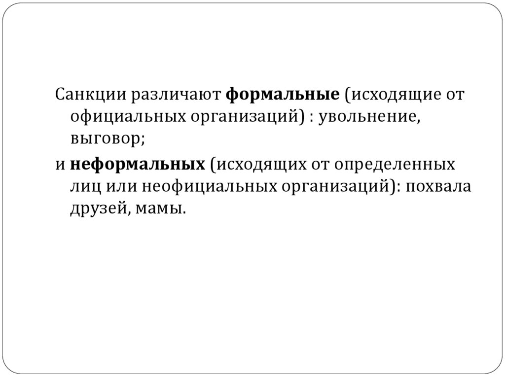 Санкции различают формальные (исходящие отофициальных организаций) : увольнение,