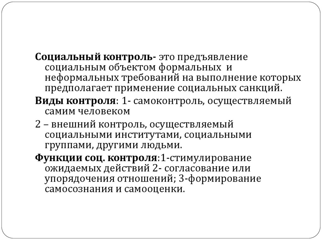 Социальный контроль- это предъявлениесоциальным объектом формальных и
