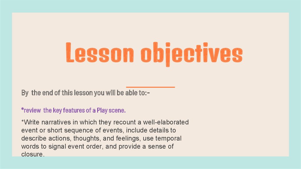 Lesson objectivesBy the end of this lesson you will be able to:*review the key features of a Play scene.