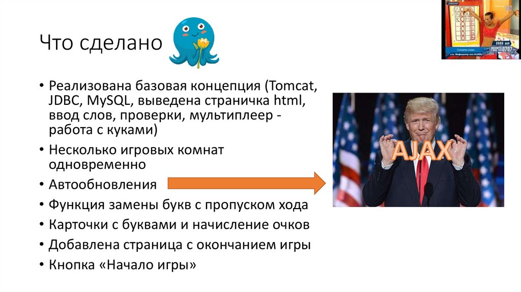 Что сделано• Реализована базовая концепция (Tomcat,