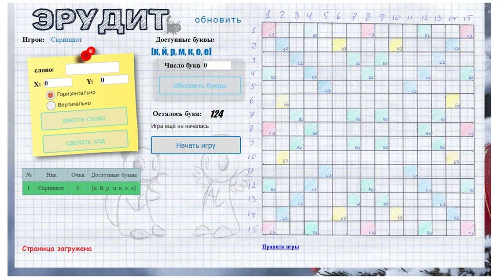 • Кнопка «Начало игры»
