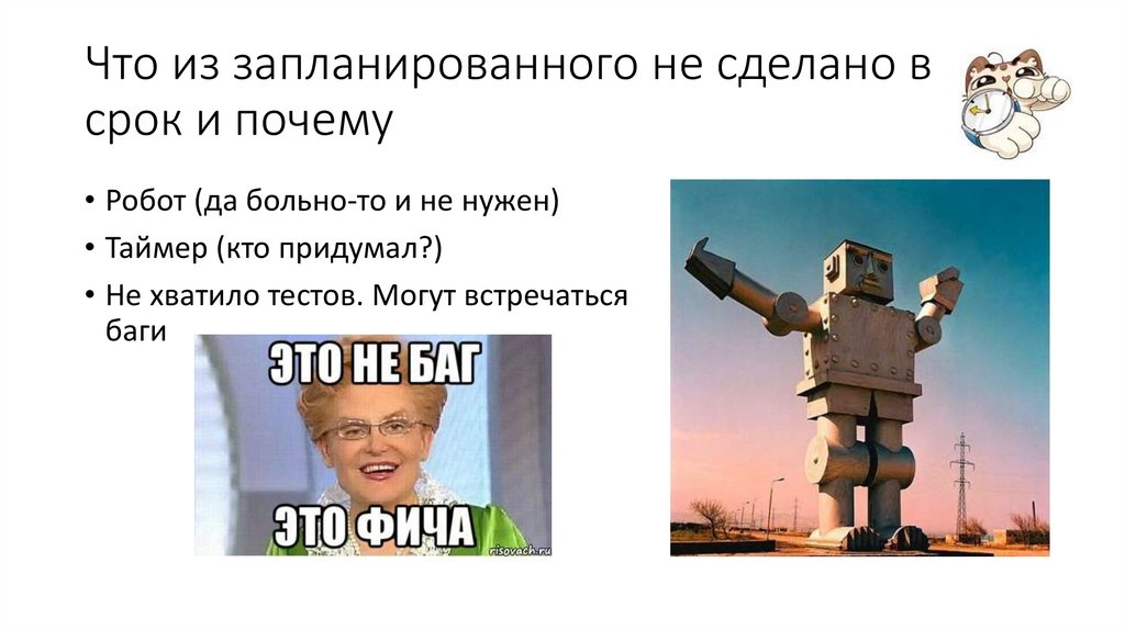 Что из запланированного не сделано всрок и почему