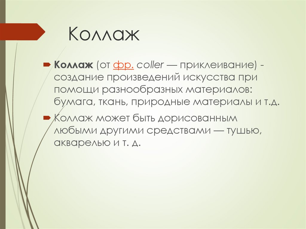 КоллажКоллаж (от фр. coller — приклеивание) создание произведений искусства при