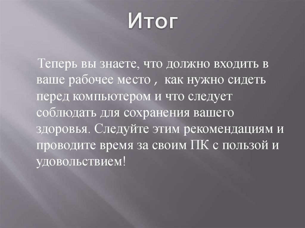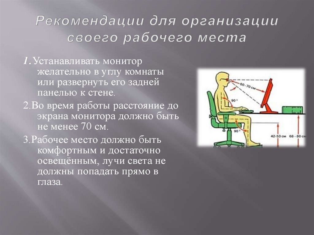 Теперь вы знаете, что должно входить вваше рабочее место , как нужно сидеть