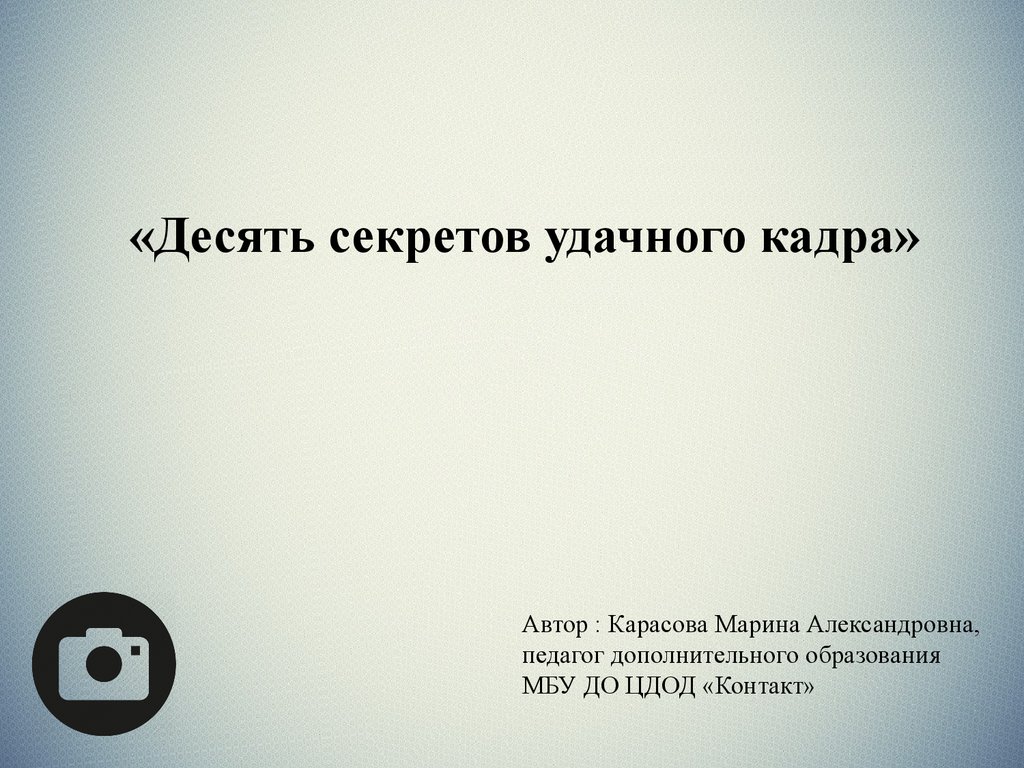 «Десять секретов удачного кадра»Автор : Карасова Марина Александровна,