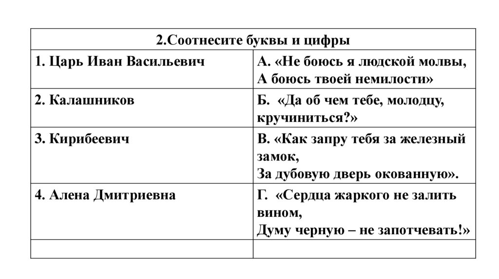 2.Соотнесите буквы и цифры1. Царь Иван Васильевич