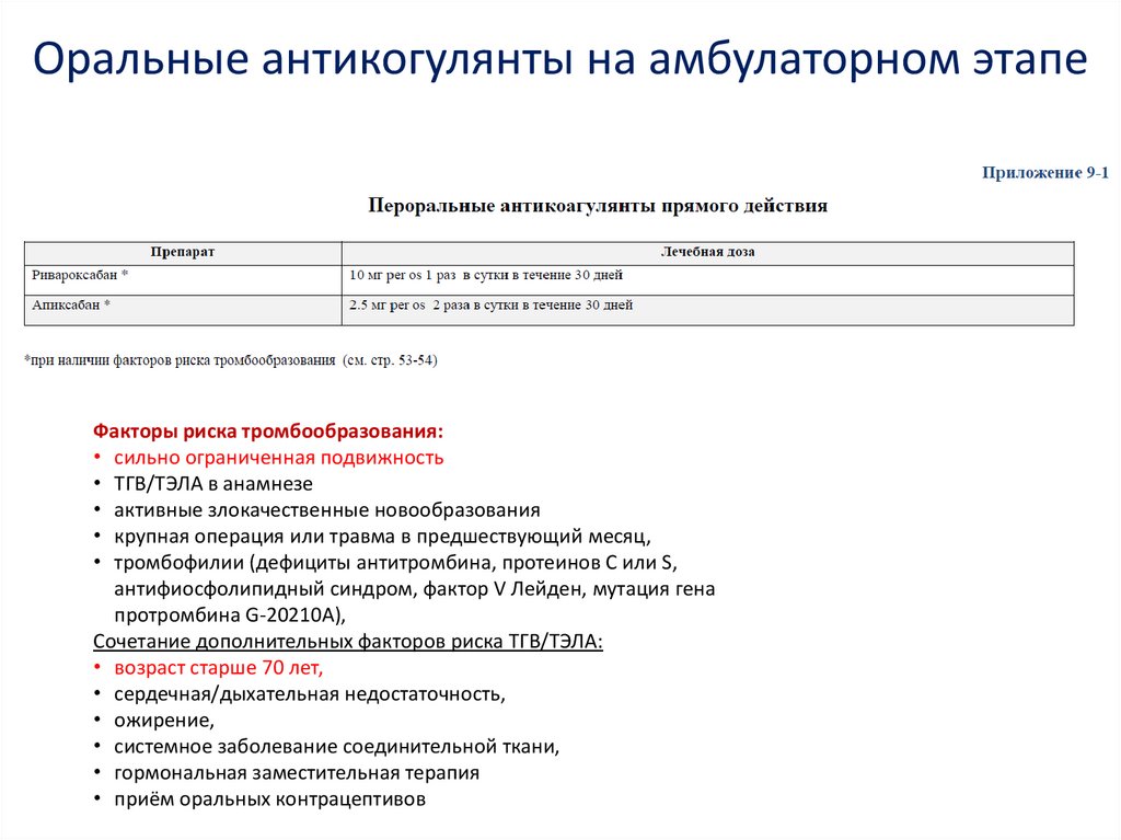 Оральные антикогулянты на амбулаторном этапеФакторы риска тромбообразования: