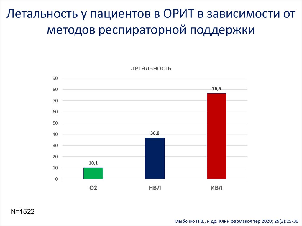 Летальность у пациентов в ОРИТ в зависимости отметодов респираторной поддержки
