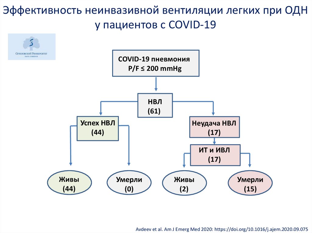 Эффективность неинвазивной вентиляции легких при ОДНу пациентов с COVID-19