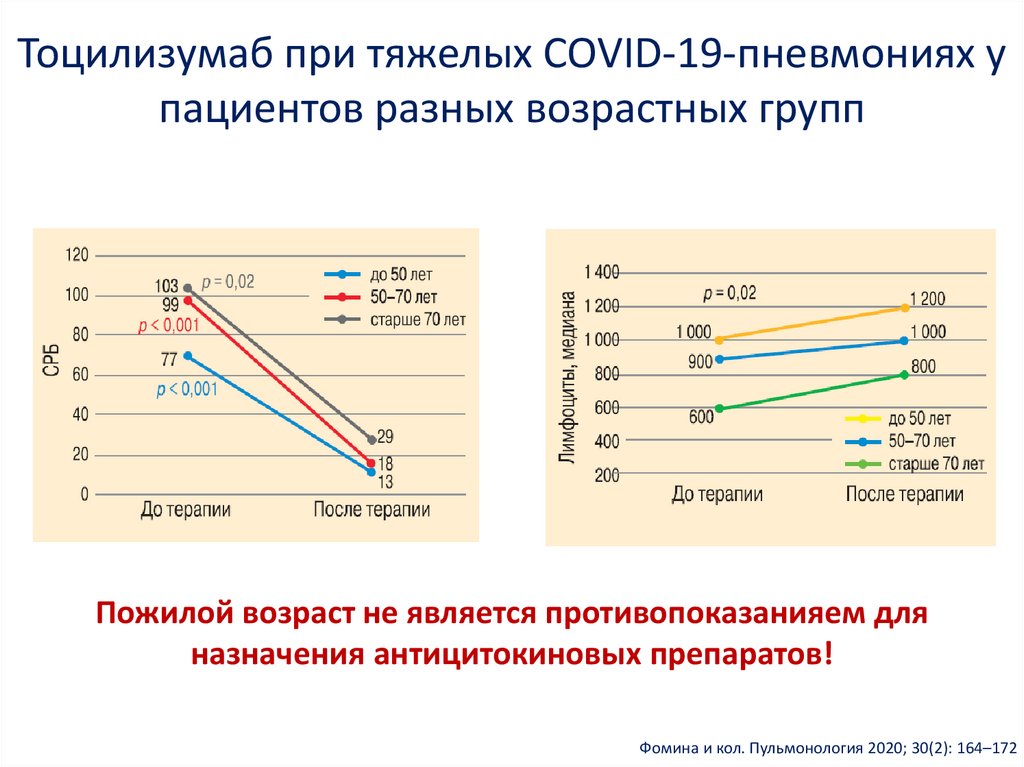 Тоцилизумаб при тяжелых COVID-19-пневмониях упациентов разных возрастных групп