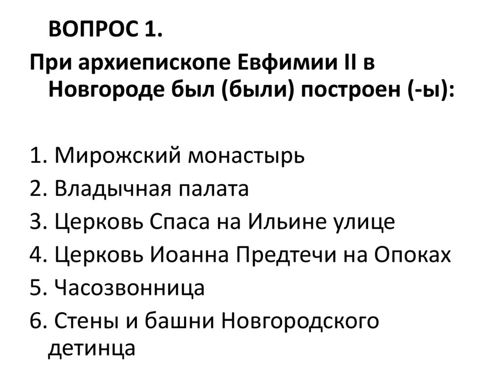 ВОПРОС 1.При архиепископе Евфимии II в