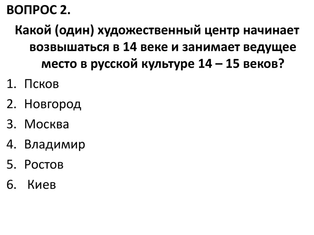 ВОПРОС 2.Какой (один) художественный центр начинает