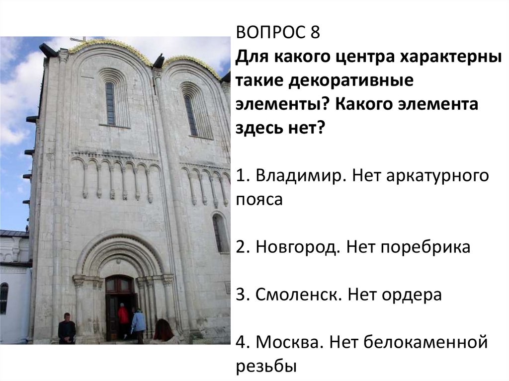 1. Владимир. Нет аркатурного