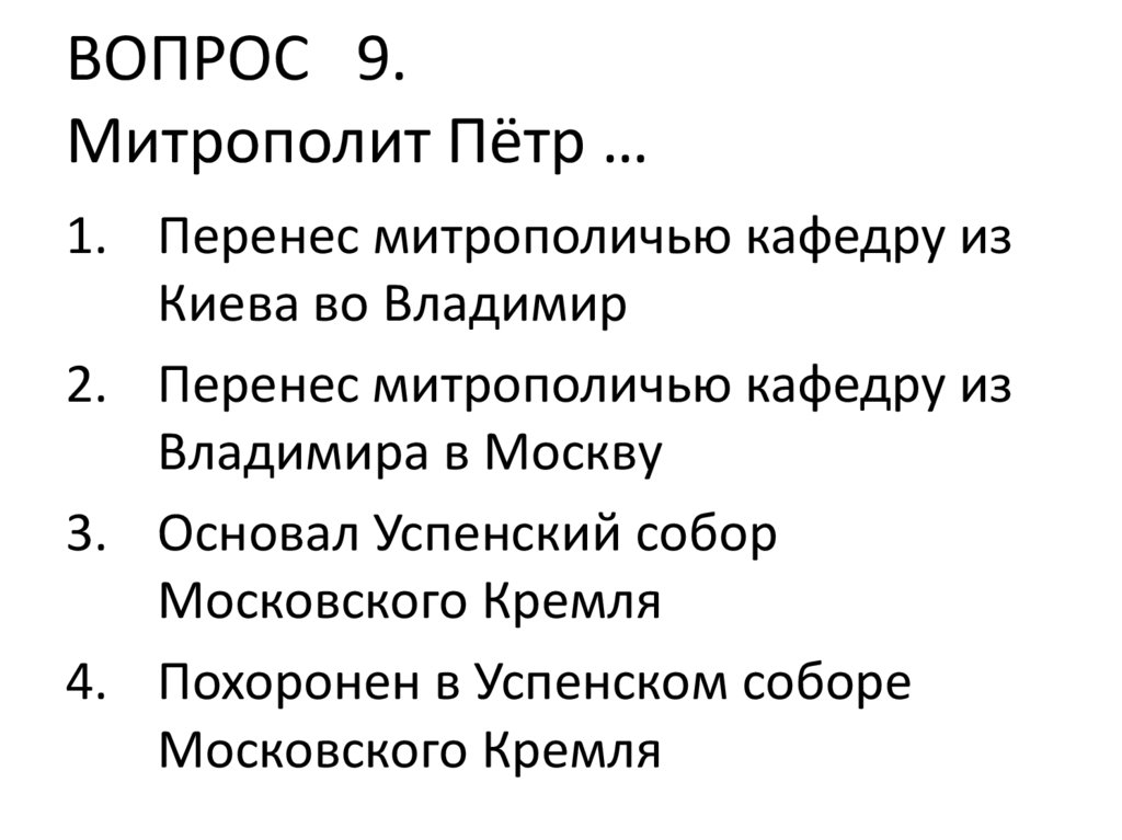 ВОПРОС 9.Митрополит Пётр …