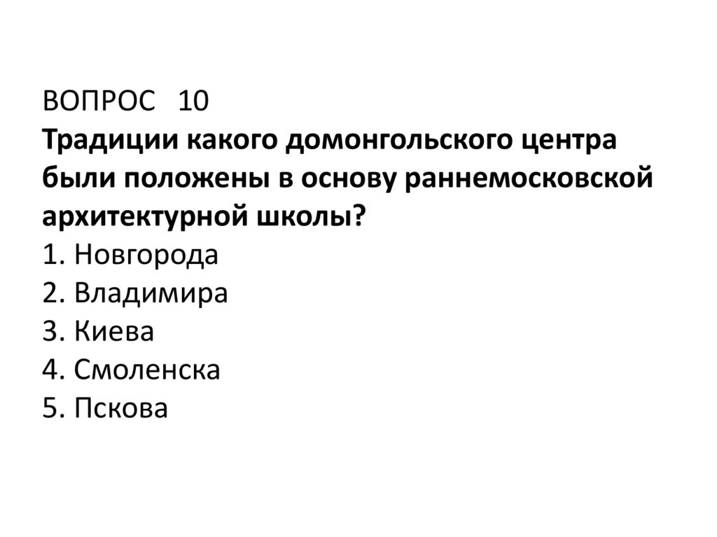 ВОПРОС 10Традиции какого домонгольского центра