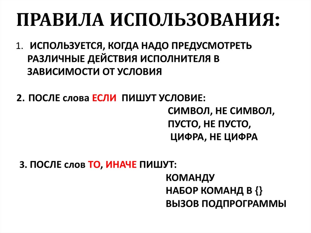 2. ПОСЛЕ слова ЕСЛИ ПИШУТ УСЛОВИЕ: