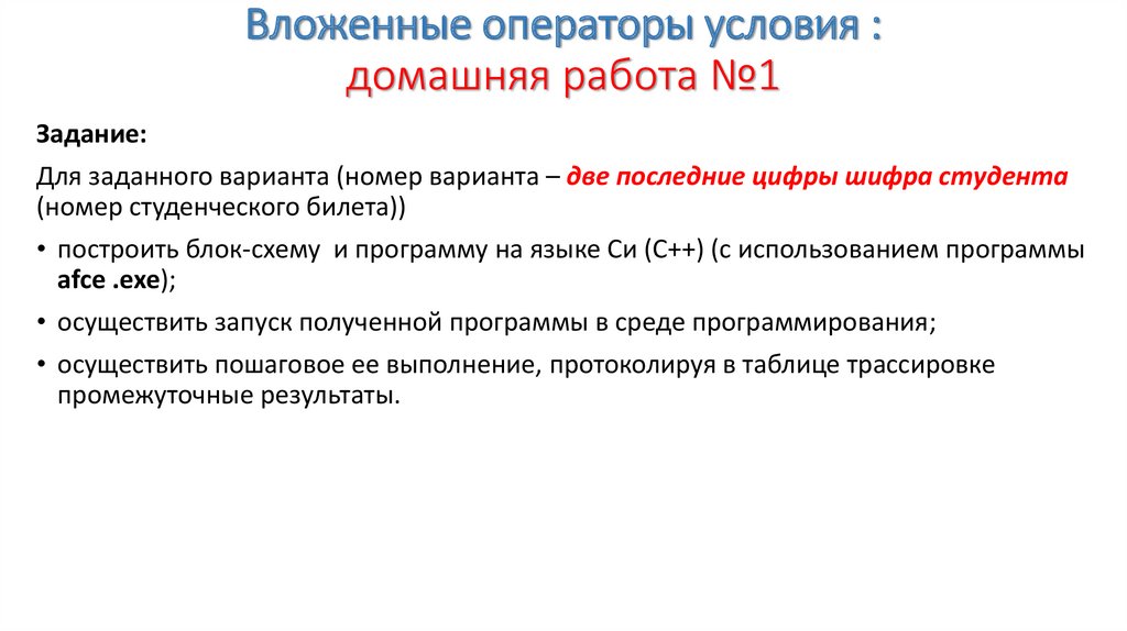 Вложенные операторы условия :домашняя работа №1
