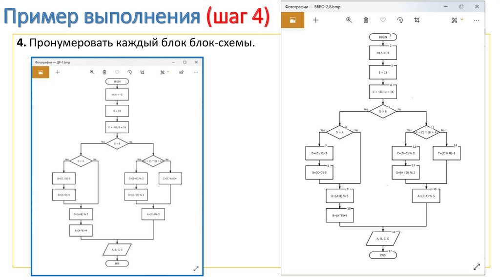 Пример выполнения (шаг 4)4. Пронумеровать каждый блок блок-схемы.