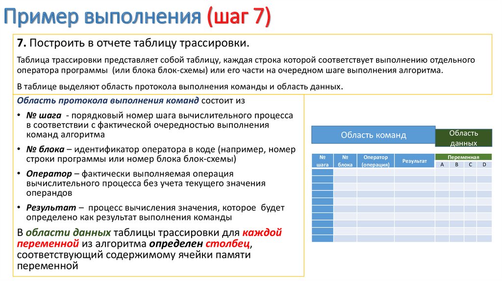 Пример выполнения (шаг 7)7. Построить в отчете таблицу трассировки.