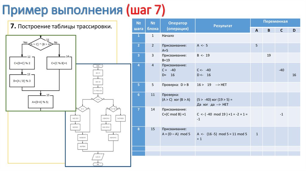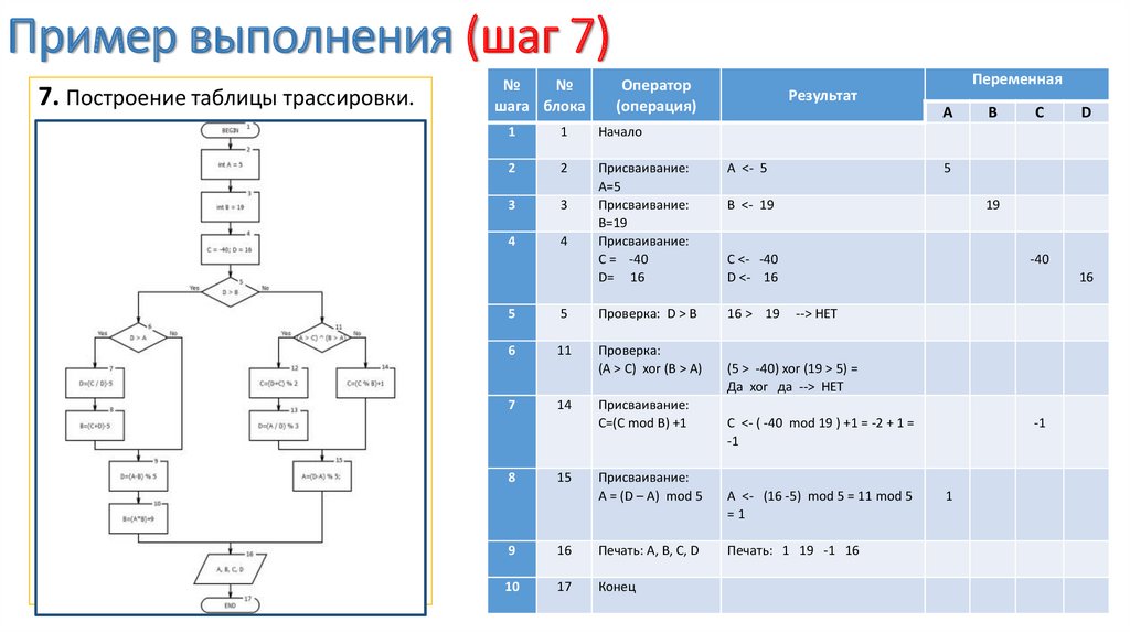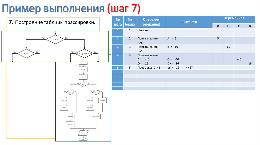 Пример выполнения (шаг 7)7. Построение таблицы трассировки.