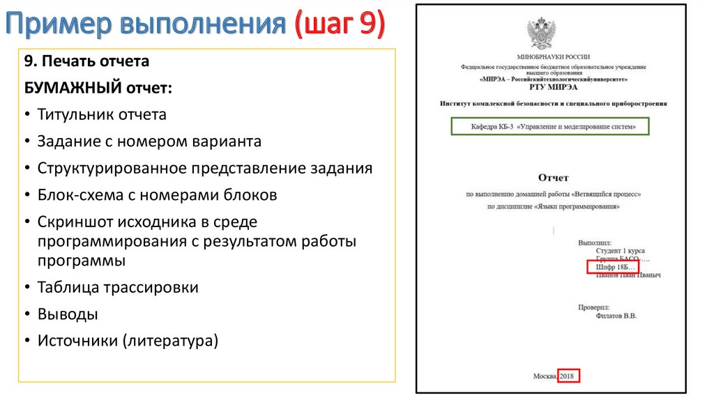 Пример выполнения (шаг 9)9. Печать отчета