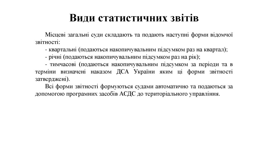 Місцеві загальні суди складають та подають наступні форми відомчоїзвітності: