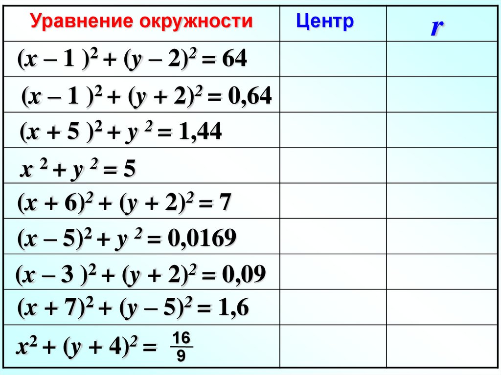 Уравнение окружностиЦентр