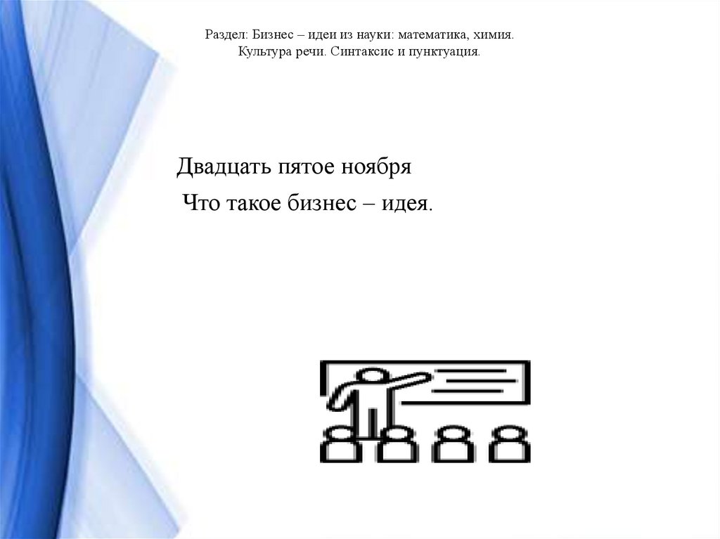 Раздел: Бизнес – идеи из науки: математика, химия.Культура речи. Синтаксис и пунктуация.