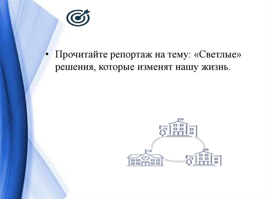 • Прочитайте репортаж на тему: «Светлые»решения, которые изменят нашу жизнь.