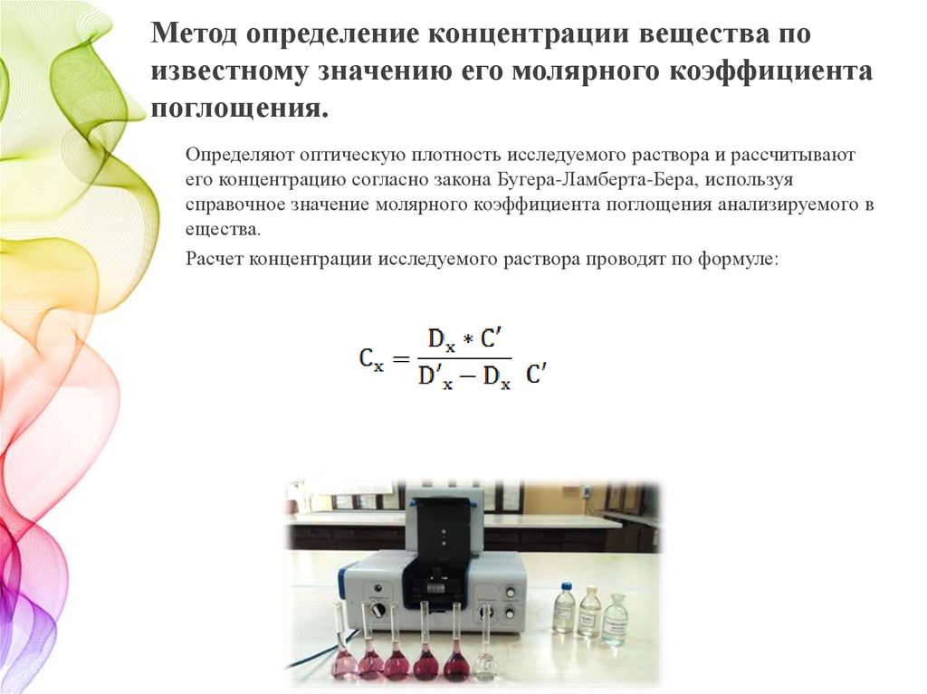 Метод определение концентрации вещества поизвестному значению его молярного коэффициента