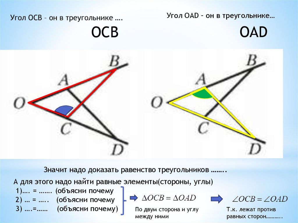 Угол ОАD – он в треугольнике…ОАD