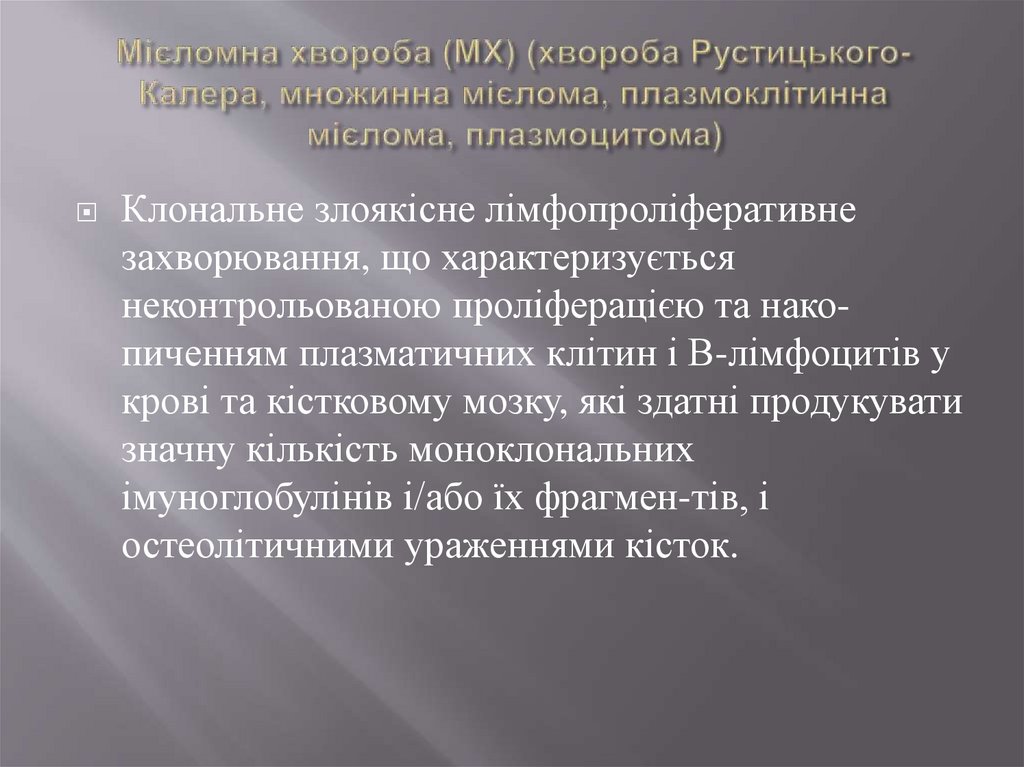 неконтрольованою проліферацією та накопиченням плазматичних клітин і В-лімфоцитів у