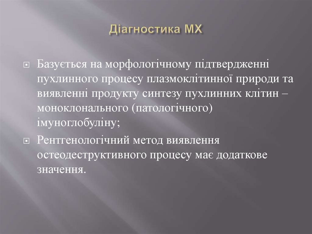 Базується на морфологічному підтвердженніпухлинного процесу плазмоклітинної природи та